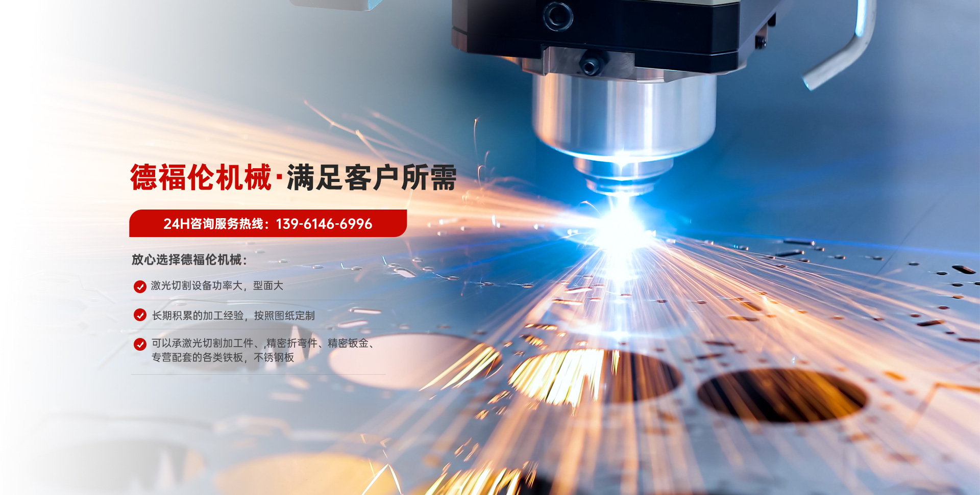常州德福倫機械有限公司成立于2014年12月19號,位于江蘇省常州市武進區遙觀鎮建農村劍童路56號西門;公司配備;1萬瓦通K激光切割機1臺,6千瓦領C激光切割機1臺;機器行程6米*2.2米,切割不銹鋼50mm,碳鋼30mm;300噸大型數控折彎機。精密焊接機器數臺。本公司可以承激光切割加工件、,精密折彎件、精密鈑金、專營配套的各類鐵板,不銹鋼板。長期積累的加工經驗,加上形成的質量管理體系和計劃管理程序,使我們公司的加工能力大大提高,滿足客戶所需,是我們公司的目標!公司奉行“以誠待人,服務為上,價格滿意”的宗旨。歡迎各位領導;老總前來洽談合作!
